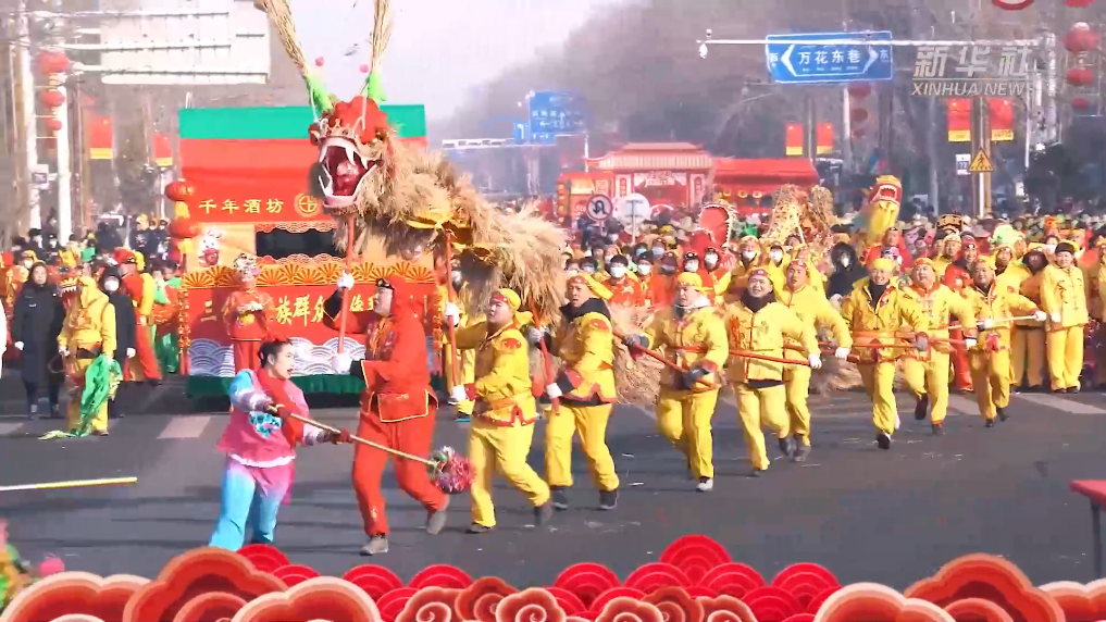 新疆社火除舞龙舞狮、秧歌等传统社火内容外,还巧妙融合了“新疆花儿”、维吾尔族“麦西热甫”、哈萨克族“黑走马”、蒙古族“萨吾尔登”等非遗和民俗文化元素,形成了“你中有我,我中有你”的风貌,彰显了中华文明“多元一体”特征。